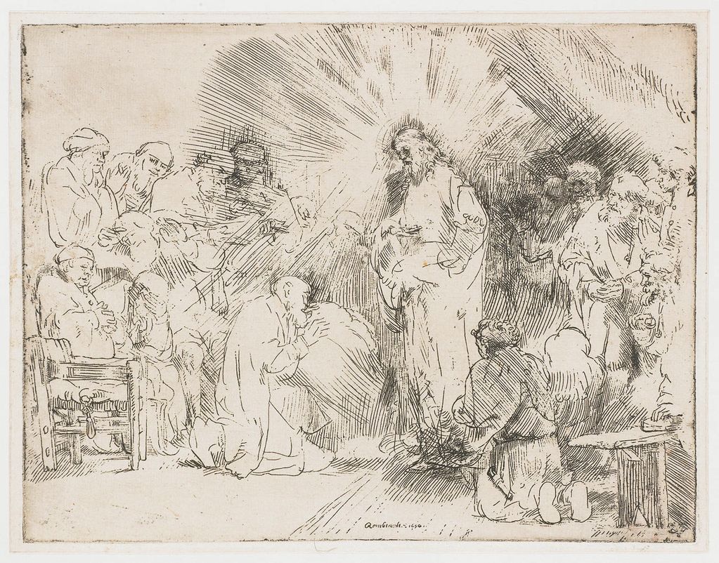 Described by the Rijksmuseum, "Rembrandt often varied the degree to which he finished a composition. Sometimes he went into exceptionally fine detail, as if the print were a painting; at other times he hardly allowed himself more than a few outlines. In this representation of Christ